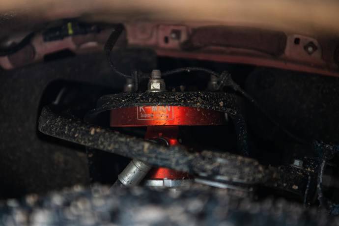 新款越野炮底盘采用非承载式结构和前双叉臂+后整体桥悬设计,并搭载了K-MAN氮气越野避震,后者在抑制热衰以及稳定性方面均优于传统油压避震,从而大大提高车辆越野能力和操控性能。